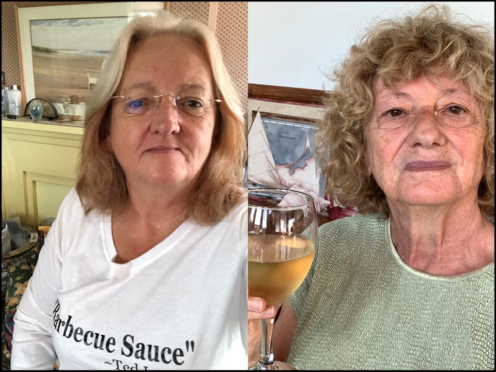 On the left, Rebecca, an American writer from Indiana, with a published portfolio of one novel,  several short stories (under her name) and half a dozen lined and dot-grid journals (under Spoonful of Sugar Publications). On the right, Hélène, a Québécoise, French-speaking editor and publisher, with about a dozen of textbook publications (Communication Cinq sur cinq) and a lifetime of technical translation and editing (yes, in French).